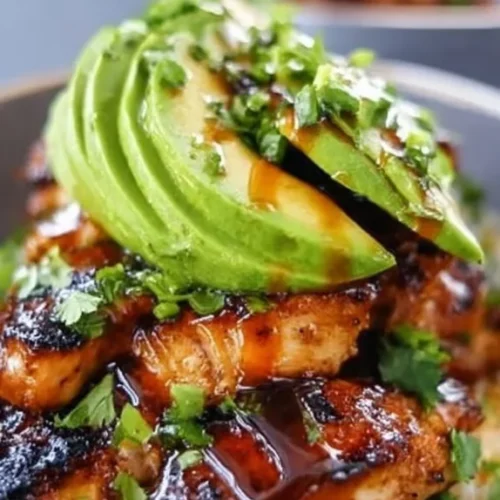 Now comes the fun part—assembling your Honey Lime Chicken & Avocado Rice Stack! Start with a generous layer of the cooked rice at the bottom of your serving dish or plate. Next, arrange the diced avocado on top of the rice, creating a smooth and creamy layer that contrasts beautifully with the fluffy rice beneath. Finally, layer the sliced honey-lime chicken over the avocado, arranging it as neatly as possible to create an appealing presentation. For an added touch of freshness, sprinkle chopped cilantro over the top, and serve with lime wedges on the side. This step not only adds a pop of color but also a burst of flavor right before each bite.