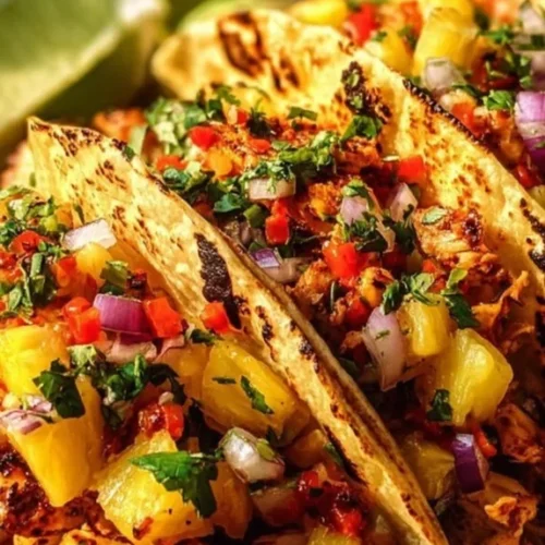 Pineapple Chicken Tacos not only tantalize your taste buds but also create a memorable dining experience shared with loved ones. The combination of sweet and savory flavors, accompanied by fresh toppings, encapsulates everything we love about tacos. So, gather your ingredients and whip up this delightful dish for your next meal. Transform your dining routine and savor every bite as you experience the flavor fiesta of these Pineapple Chicken Tacos. Don’t wait—dive into these delicious tacos today!